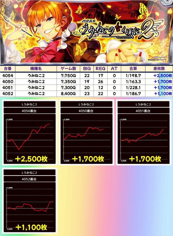 うみねこ2(5/5台+)➡平均+1,420枚