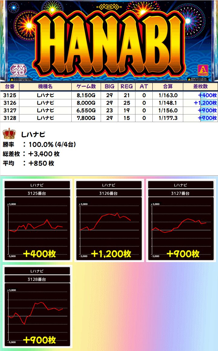 Lハナビ(4/4台+)➡平均+850枚