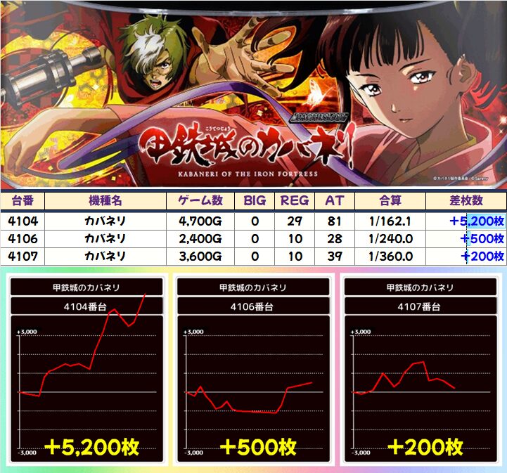 『大人気機種の増台機種』カバネリ(3/4台+)➡平均+1,200枚