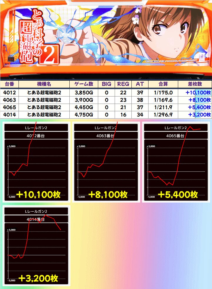 「禁書目録」は+5,600枚!+3,600枚!と4台中2台が爆発!