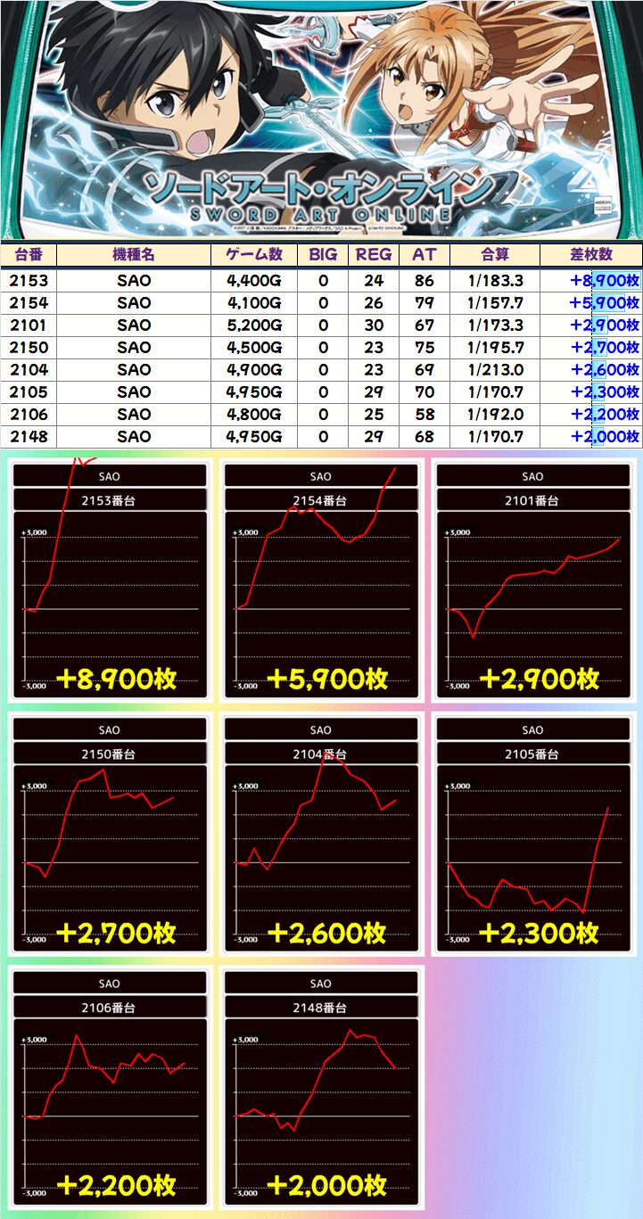 SAO(12/18台+)➡平均+1,111枚