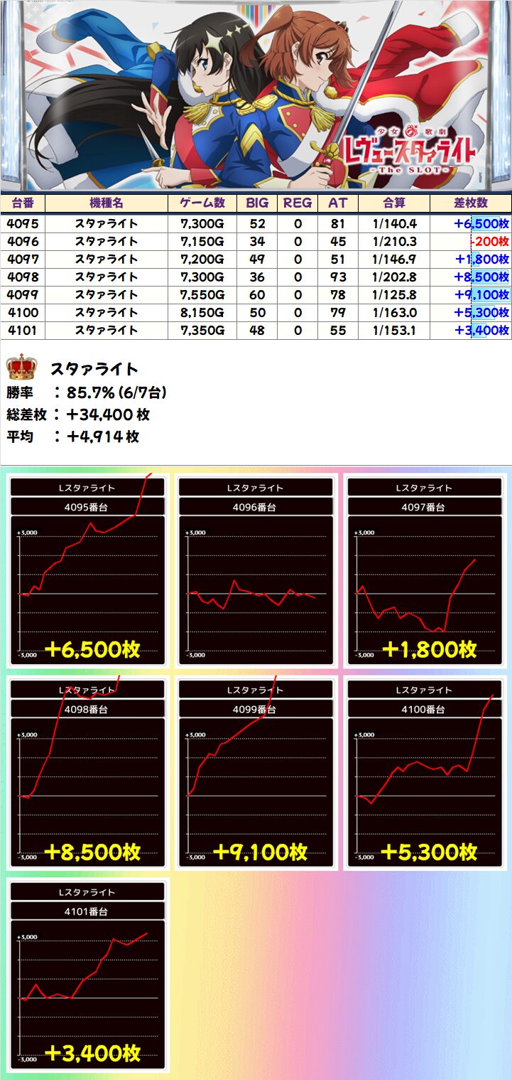 スタァライト(6/7台+)➡平均+4,914枚