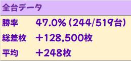 この日は総差枚+12.8万枚、平均+248枚を達成!流石ですね~!