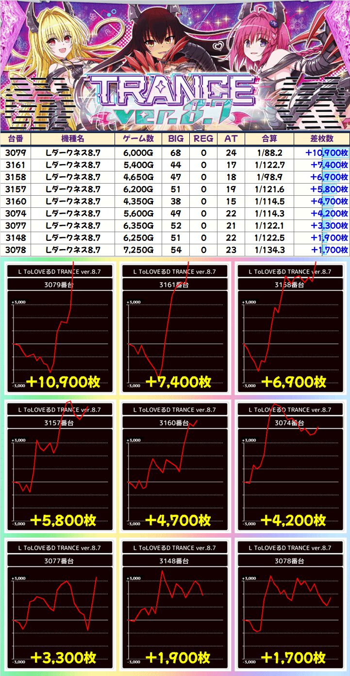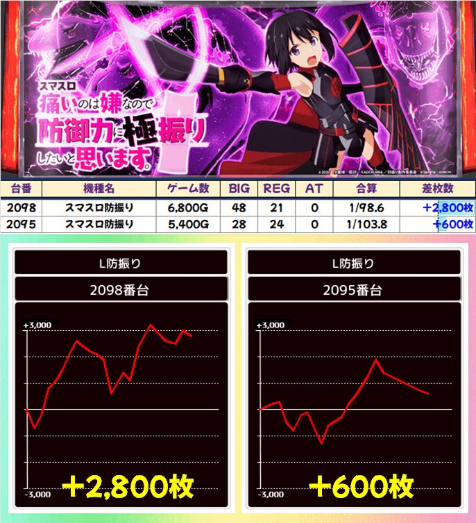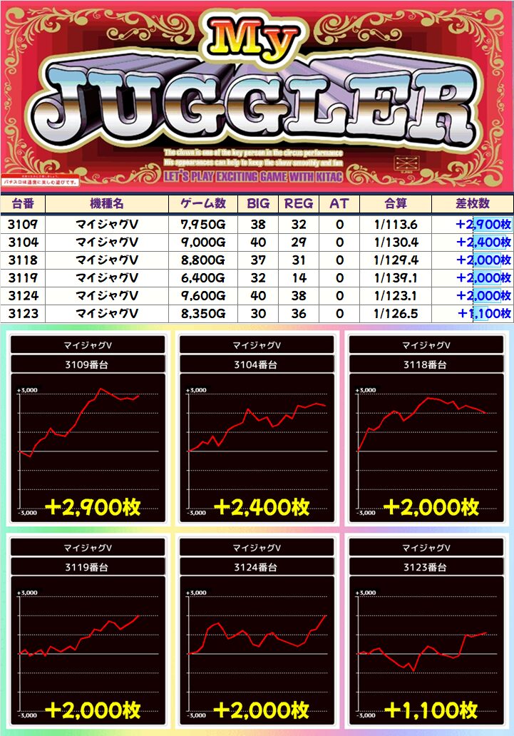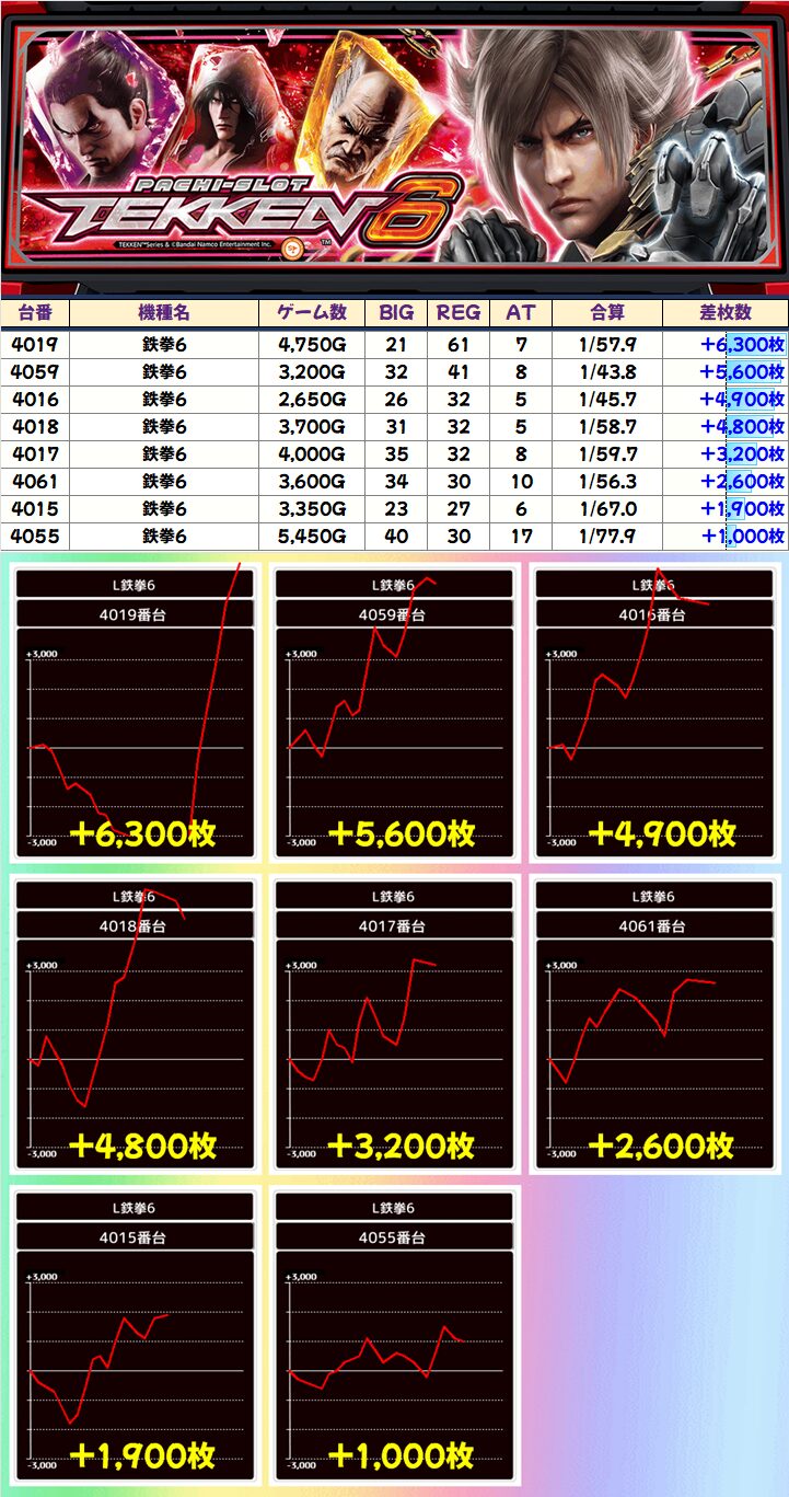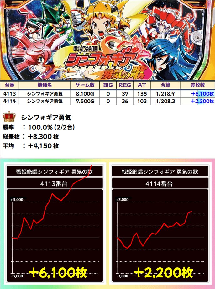 +6,100枚!+2,200枚!と全台プラス!