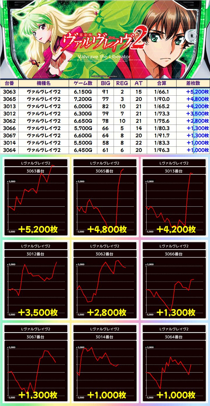 ヴァルヴレイヴ2(9/14台+)➡平均+564枚