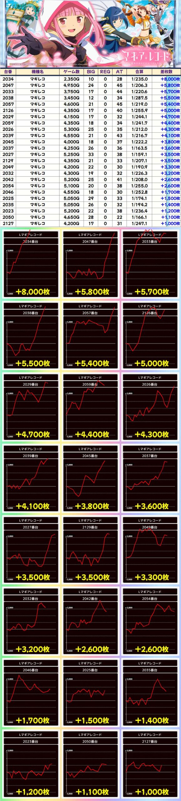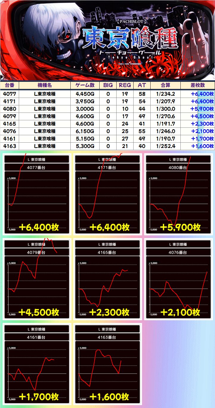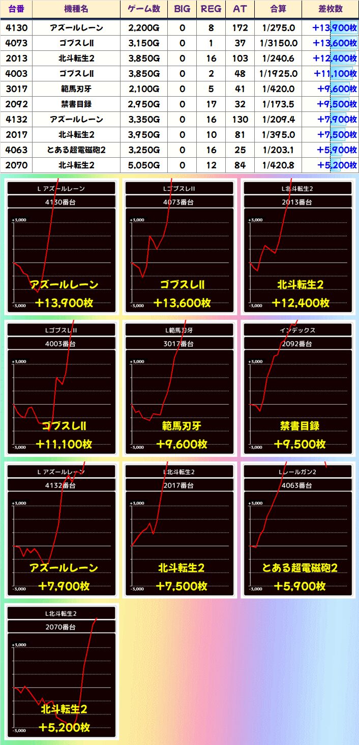 +6,300枚を筆頭に全台でプラス!