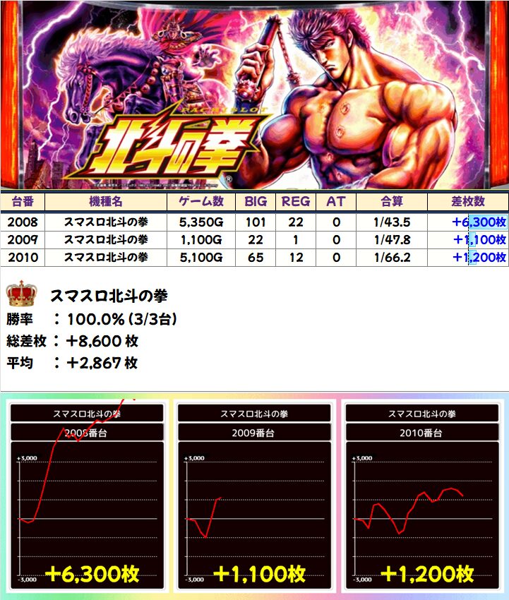 スマスロ北斗の拳(3/3台+)➡平均+2,867枚