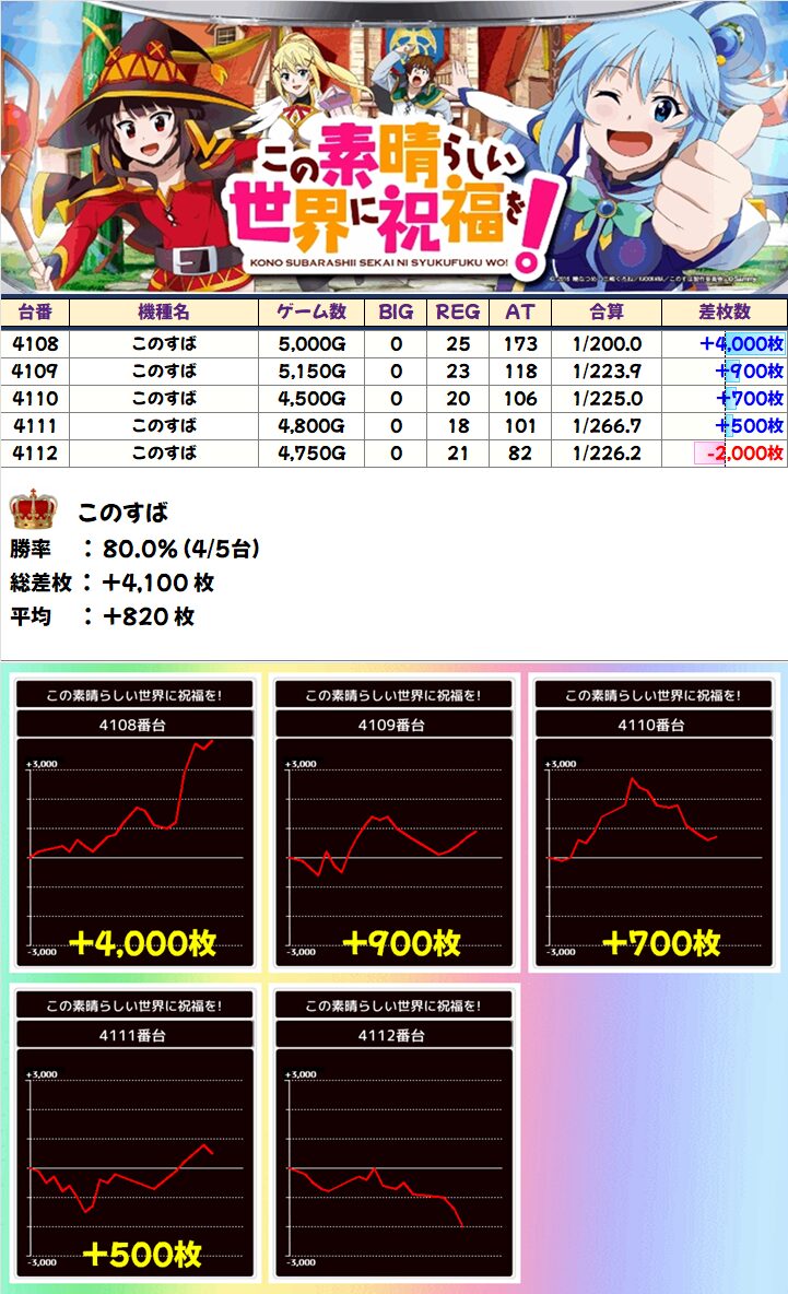 このすば(4/5台+)➡平均+820枚