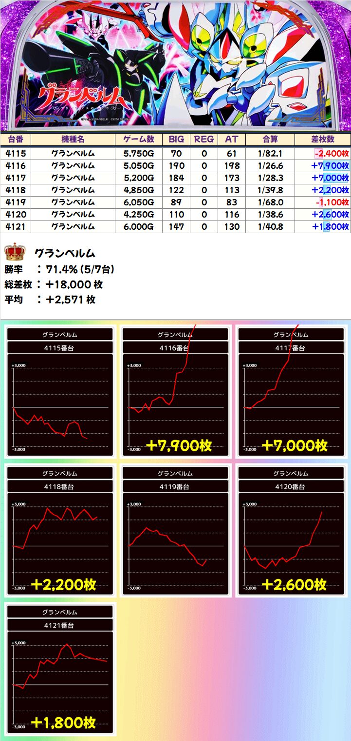グランベルム(5/7台+)➡平均+2,571枚