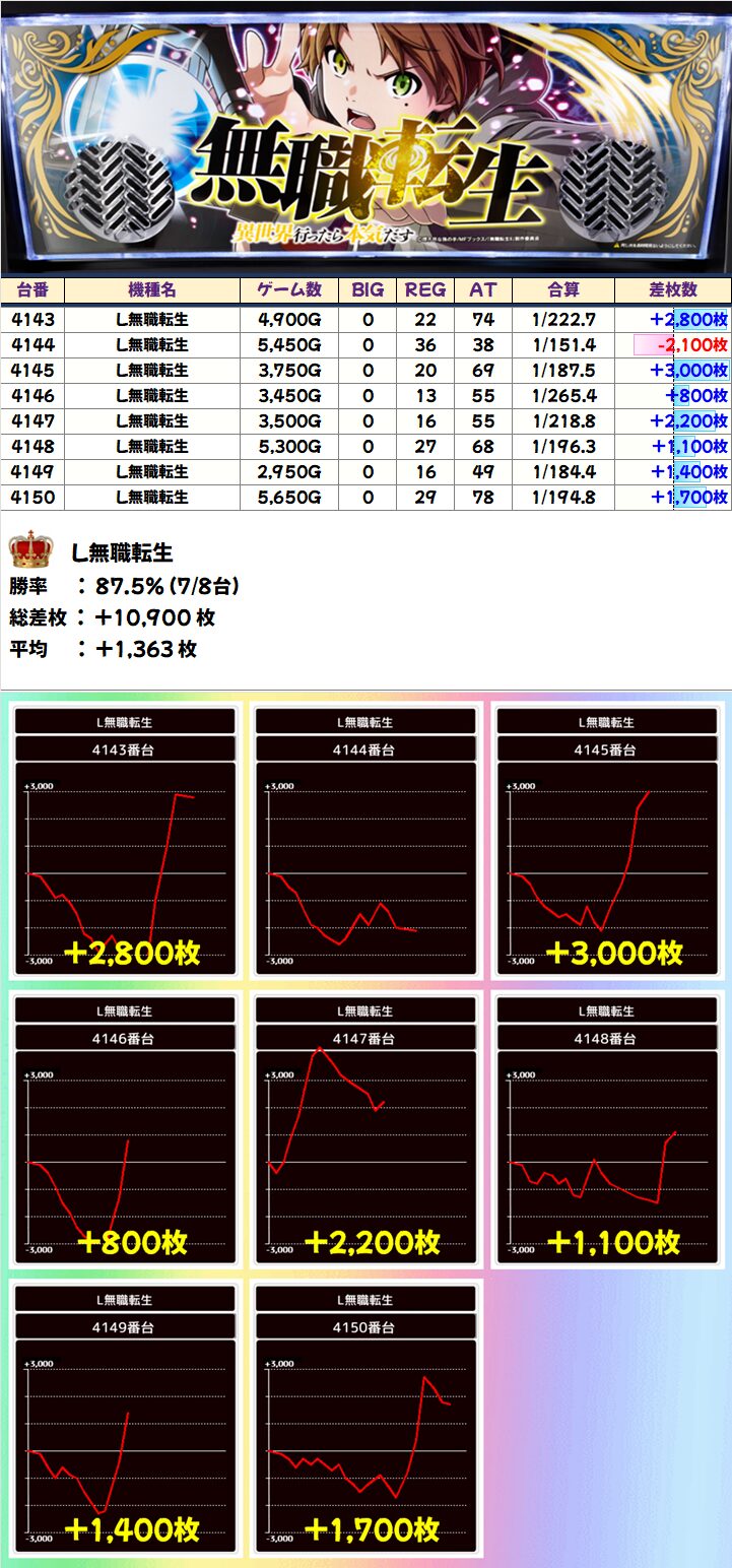 L無職転生(7/8台+)➡平均+1,363枚