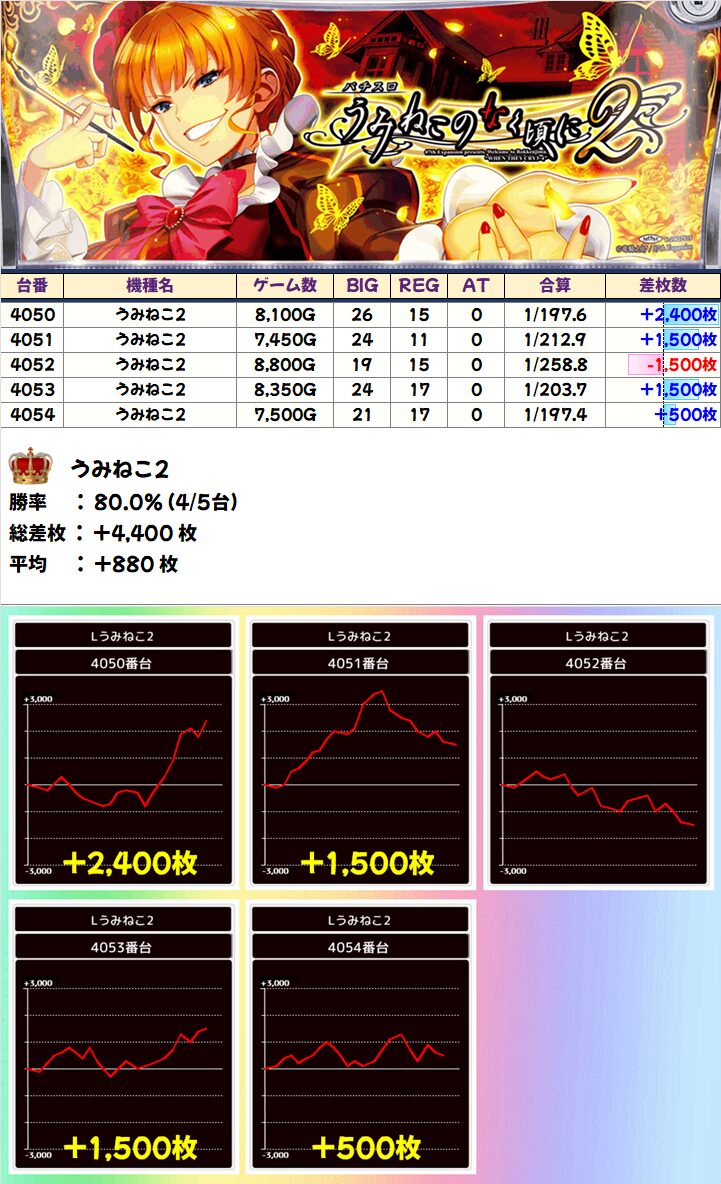 うみねこ2(4/5台+)➡平均+880枚