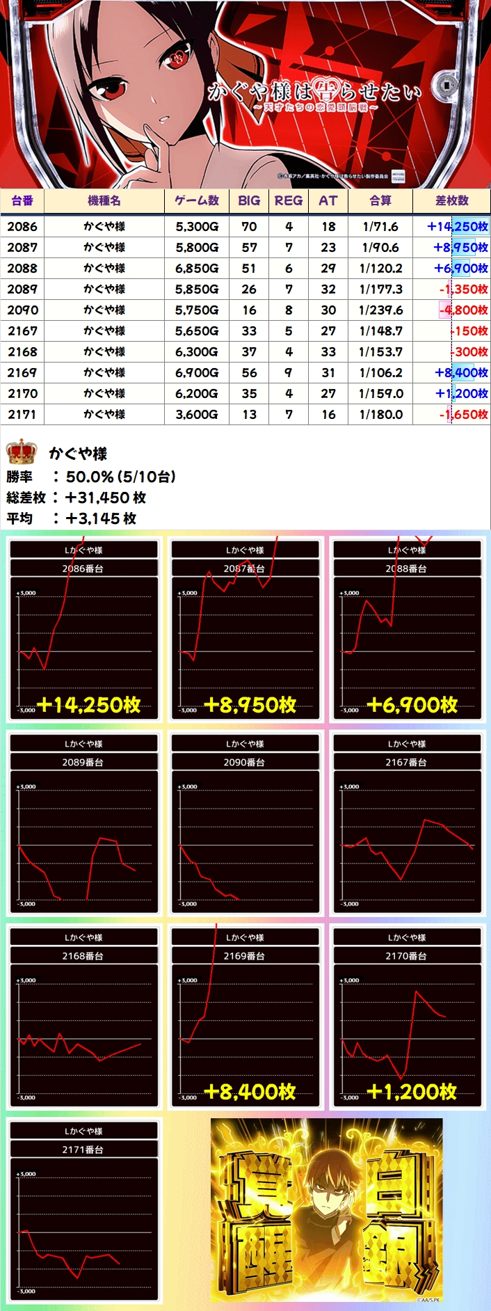 【1/2系濃厚】かぐや様(5/10台+)→平均+3,145枚