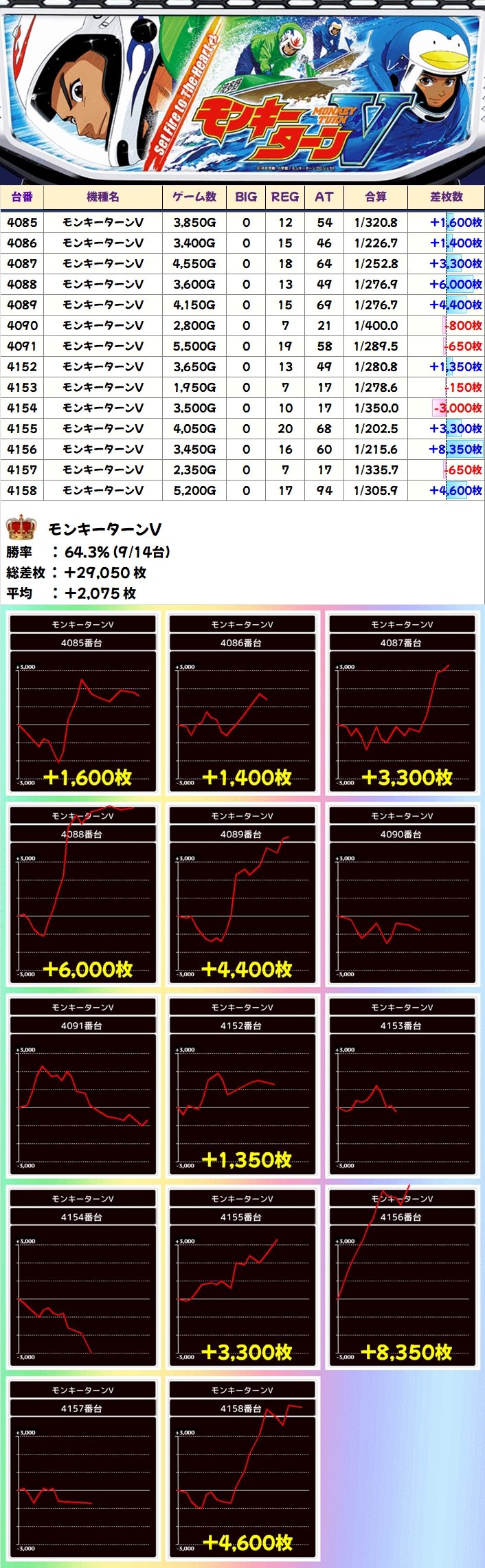 【1/2系濃厚】モンキーターンV(9/14台+)→平均+2,075枚
