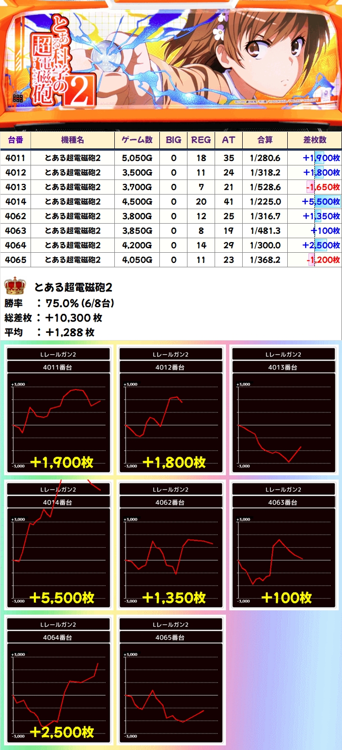 【1/2系濃厚】とある超電磁砲2(6/8台+)→平均+1,288枚