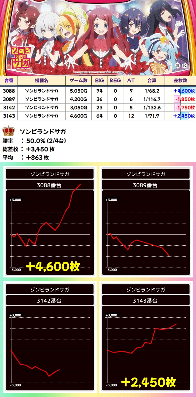 【1/2系濃厚】ゾンビランドサガ(2/4台+)→平均+863枚