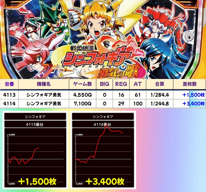 シンフォギア勇気(2/2台+)→平均+2,450枚