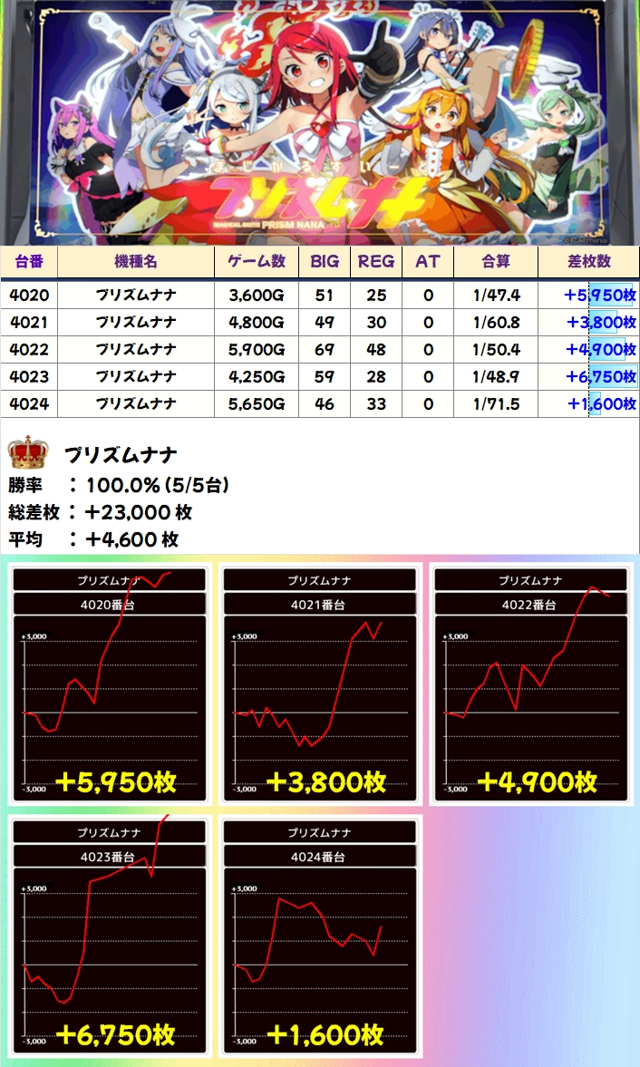 【全台系濃厚】プリズムナナ(5/5台+)→平均+4,600枚