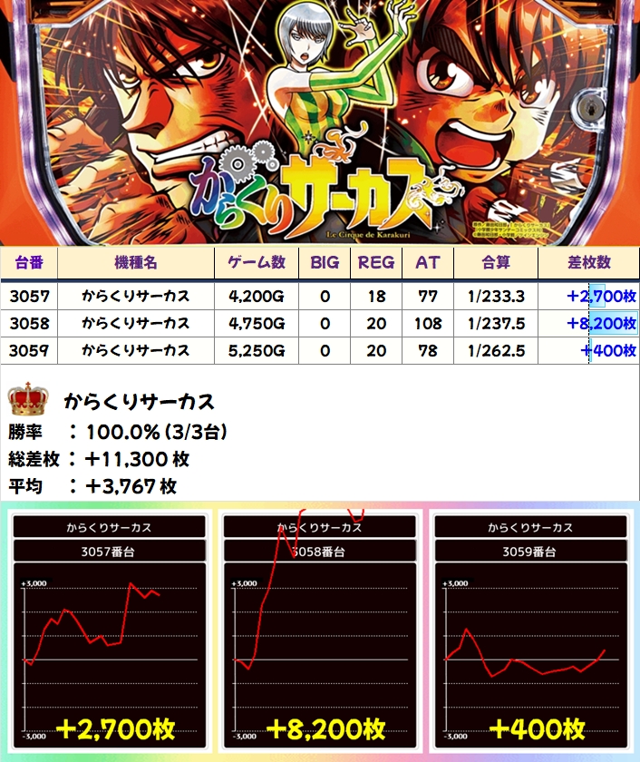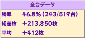 この日は総差枚+21.3万枚、平均+412枚の圧巻の結果を残す結果となりました!