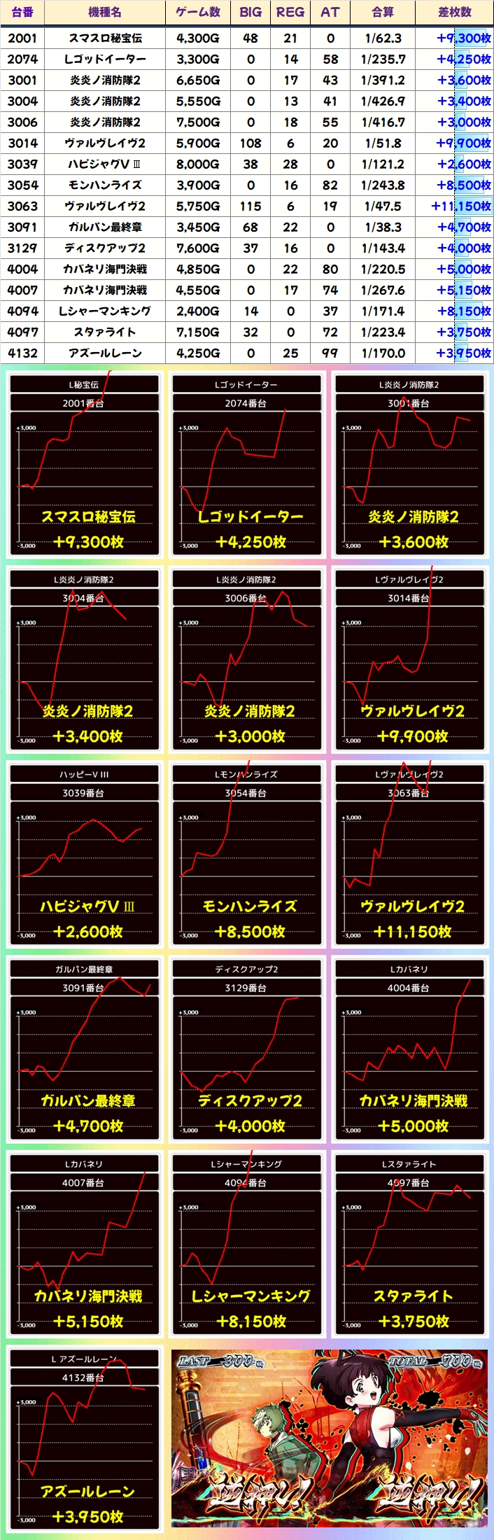この日は上記で取り上げた機種以外からも優秀台が多数出現!