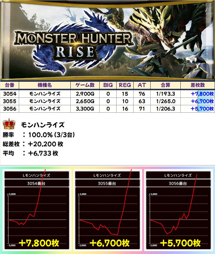 モンハンライズ(3/3台+)➡平均+6,733枚