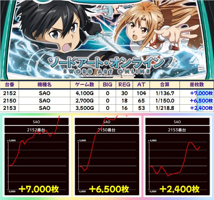 • AKIBA神3の「戦国乙女4」「SAO」「マギレコ」は優秀台が多数
