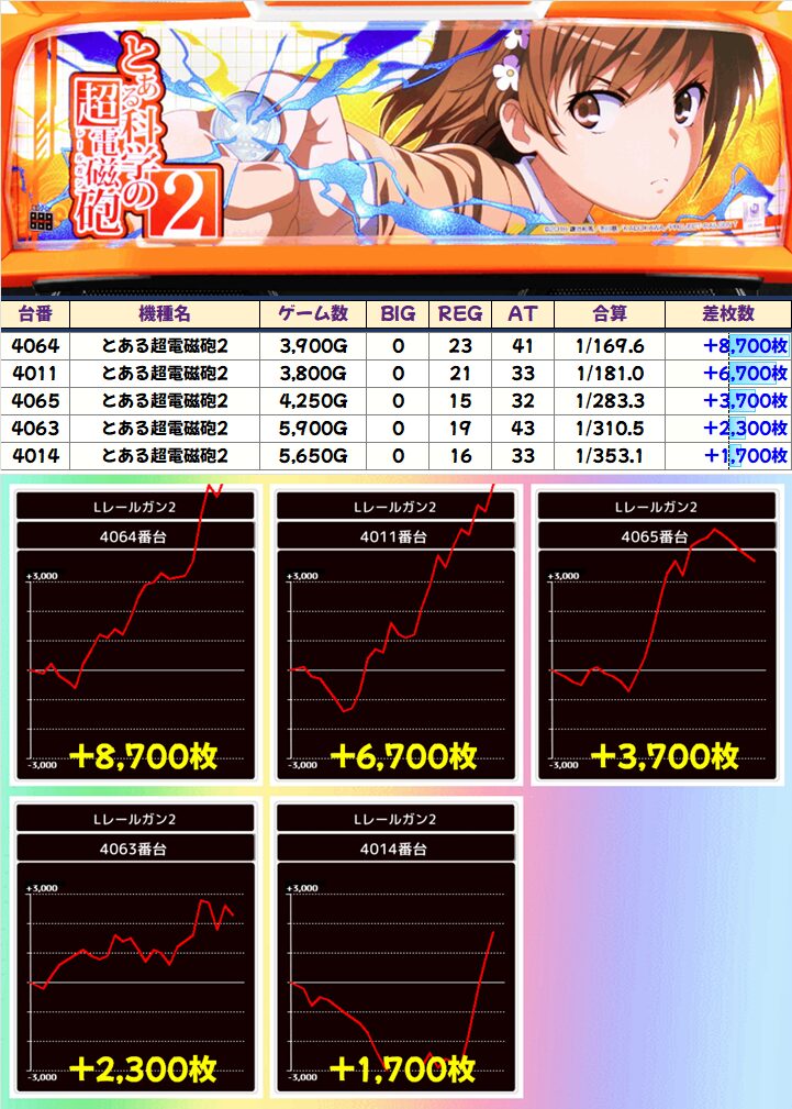 バラエティ設置の「とある超電磁砲」を含む4タイトルから+6,000枚以上の優秀台を確認!