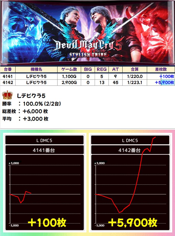 「Lデビクラ5」は+5,900枚を筆頭に全台プラスを達成!