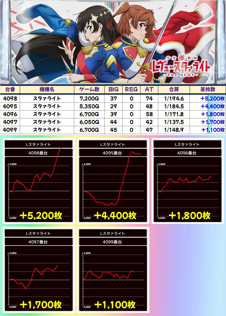 スタァライト(5/7台+)➡平均+1,900枚