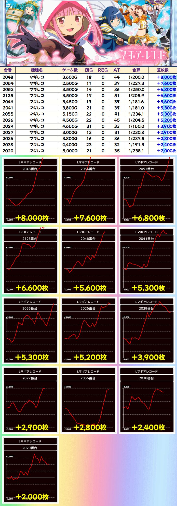 日本最大級設置の「マギレコ」&「戦国乙女4」は多数の台がプラスで、共に平均+800枚を大きく上回る好結果に!