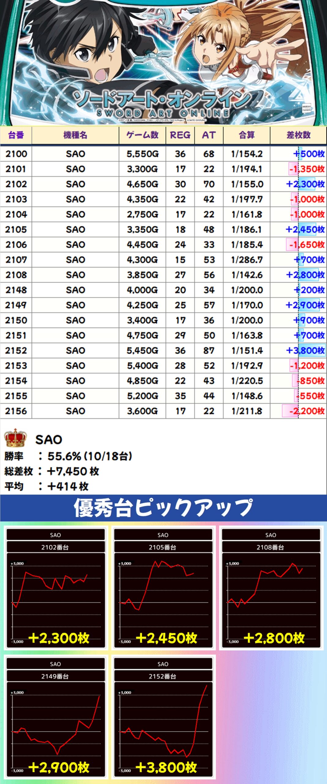 SAO(10/18台+)→平均+414枚