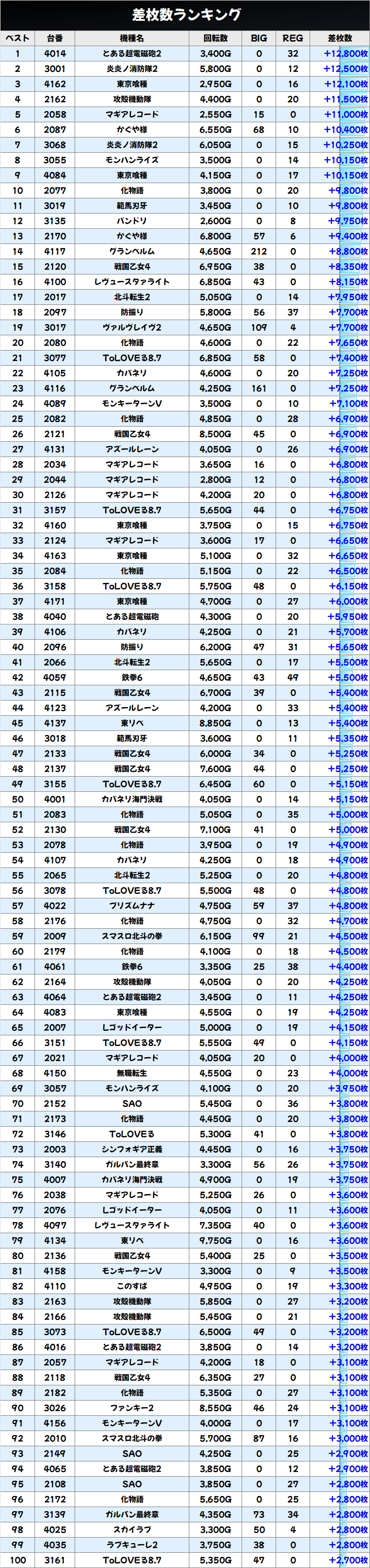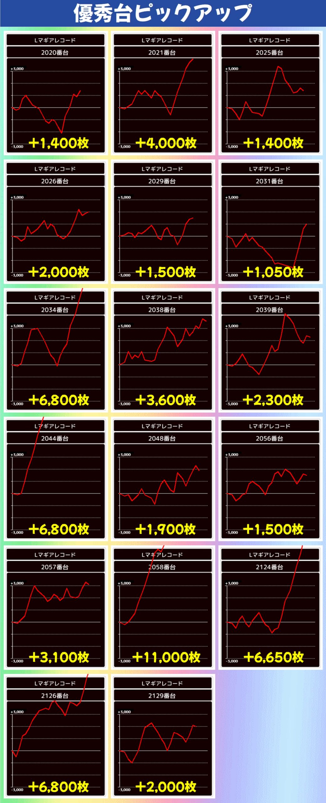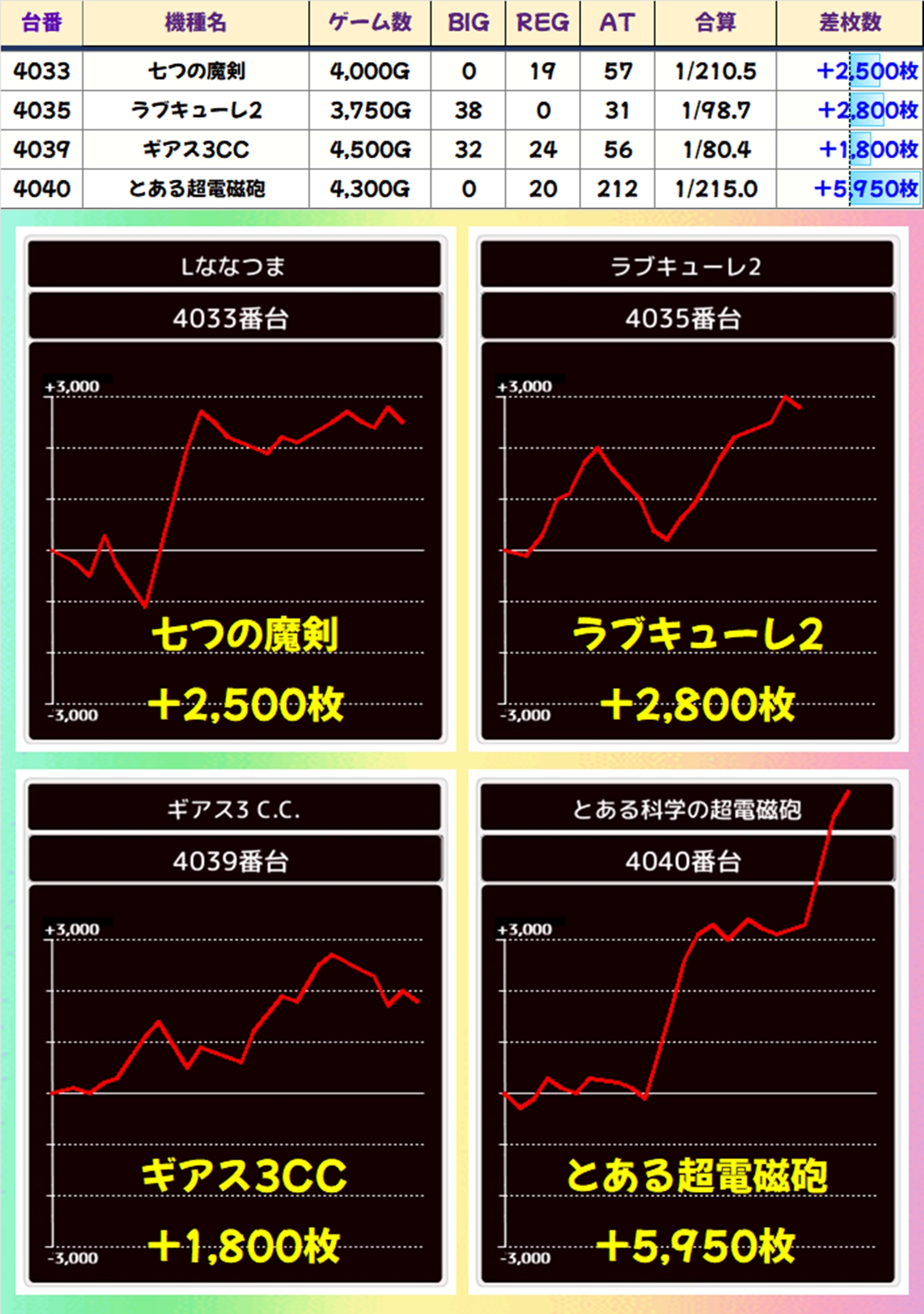 なお、マギアレコードは万枚オーバーの大爆発も飛び出し、半数近くがプラス差枚の結果となりました。こちらは高配分濃厚の仕掛けがあった可能性が高いですね!