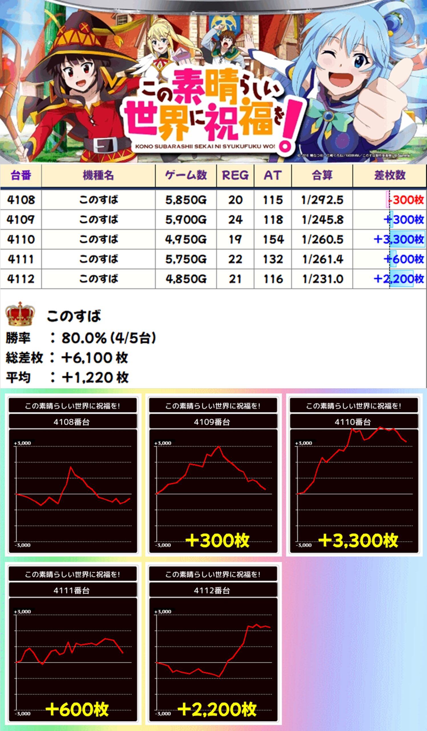 このすば(4/5台+)→平均+1,220枚