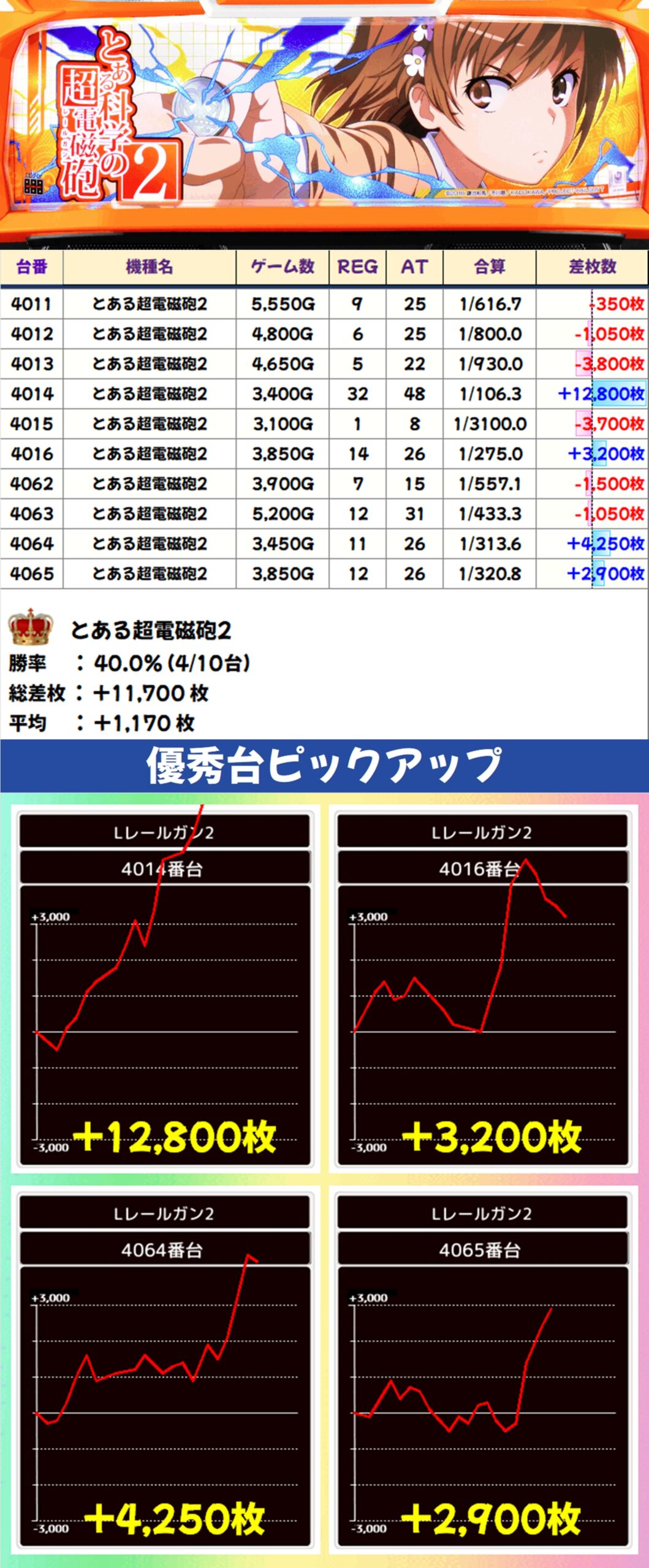 とある超電磁砲2(4/10台+)→平均+1,170枚