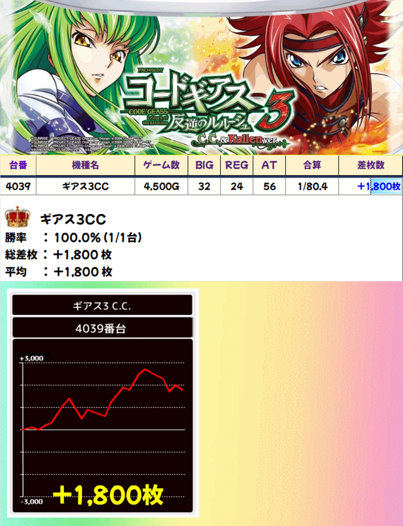 ギアス3CC→+1,800枚