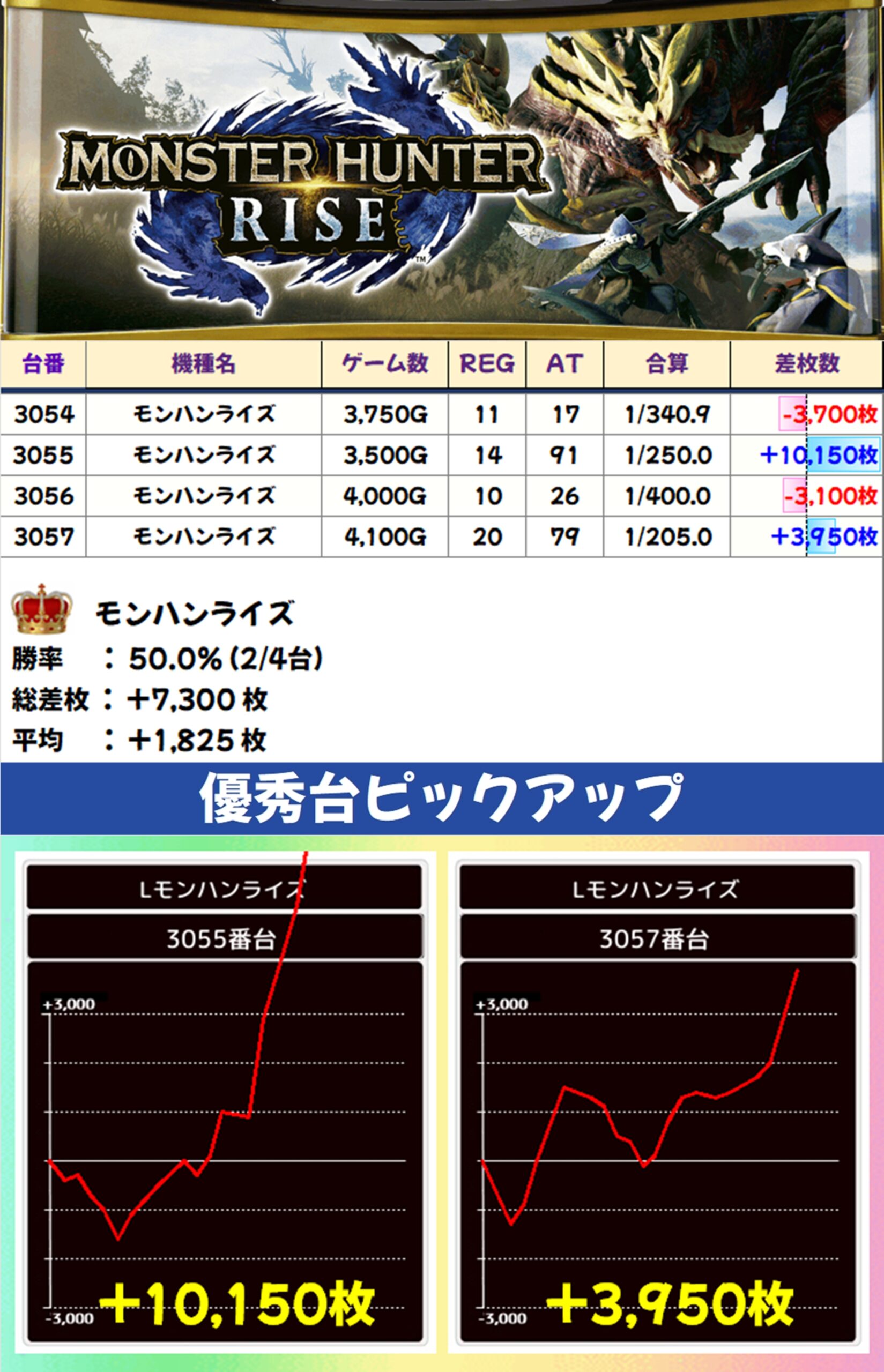 モンハンライズ(2/4台+)→平均+1,825枚
