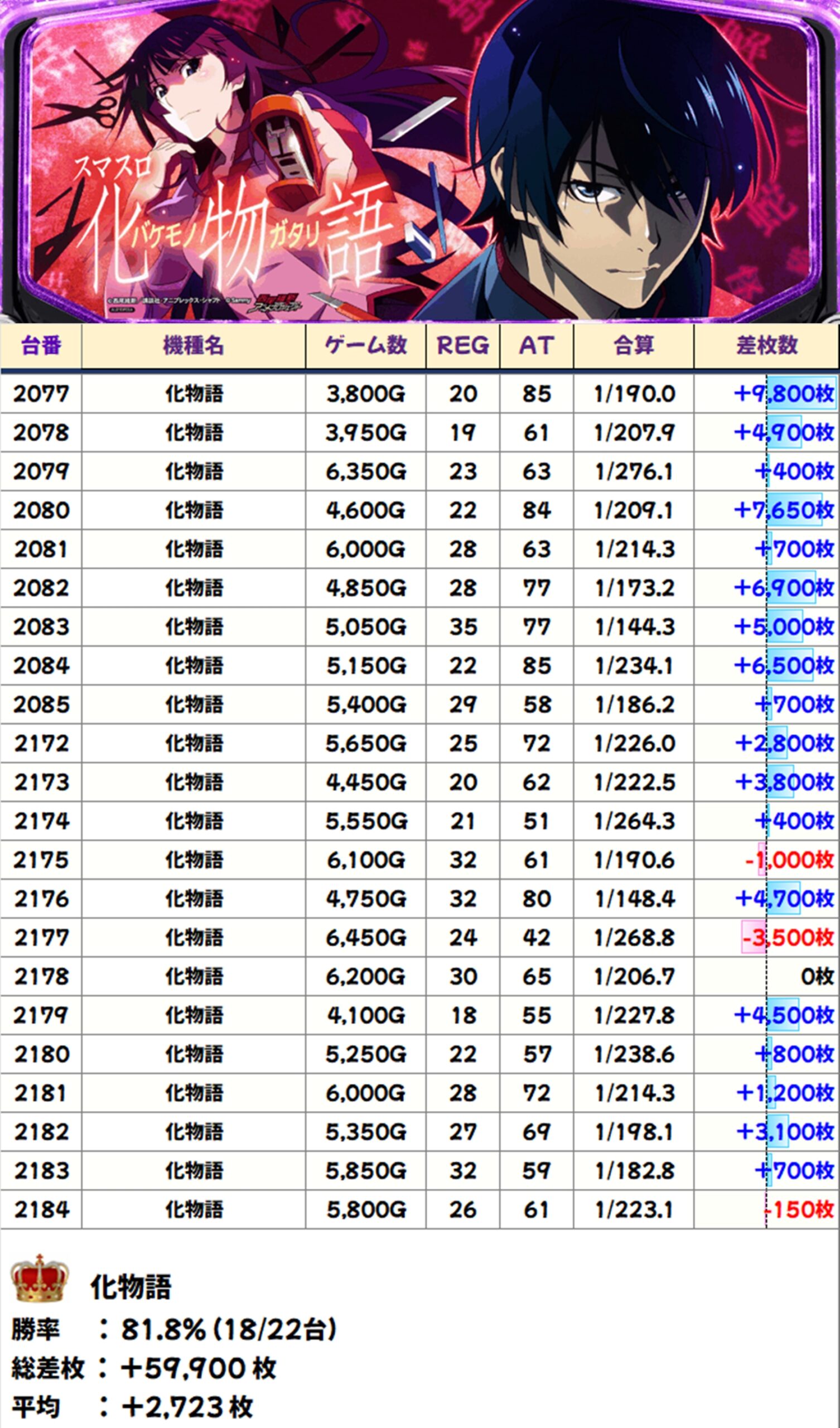 化物語(18/22台+)→平均+2,723枚