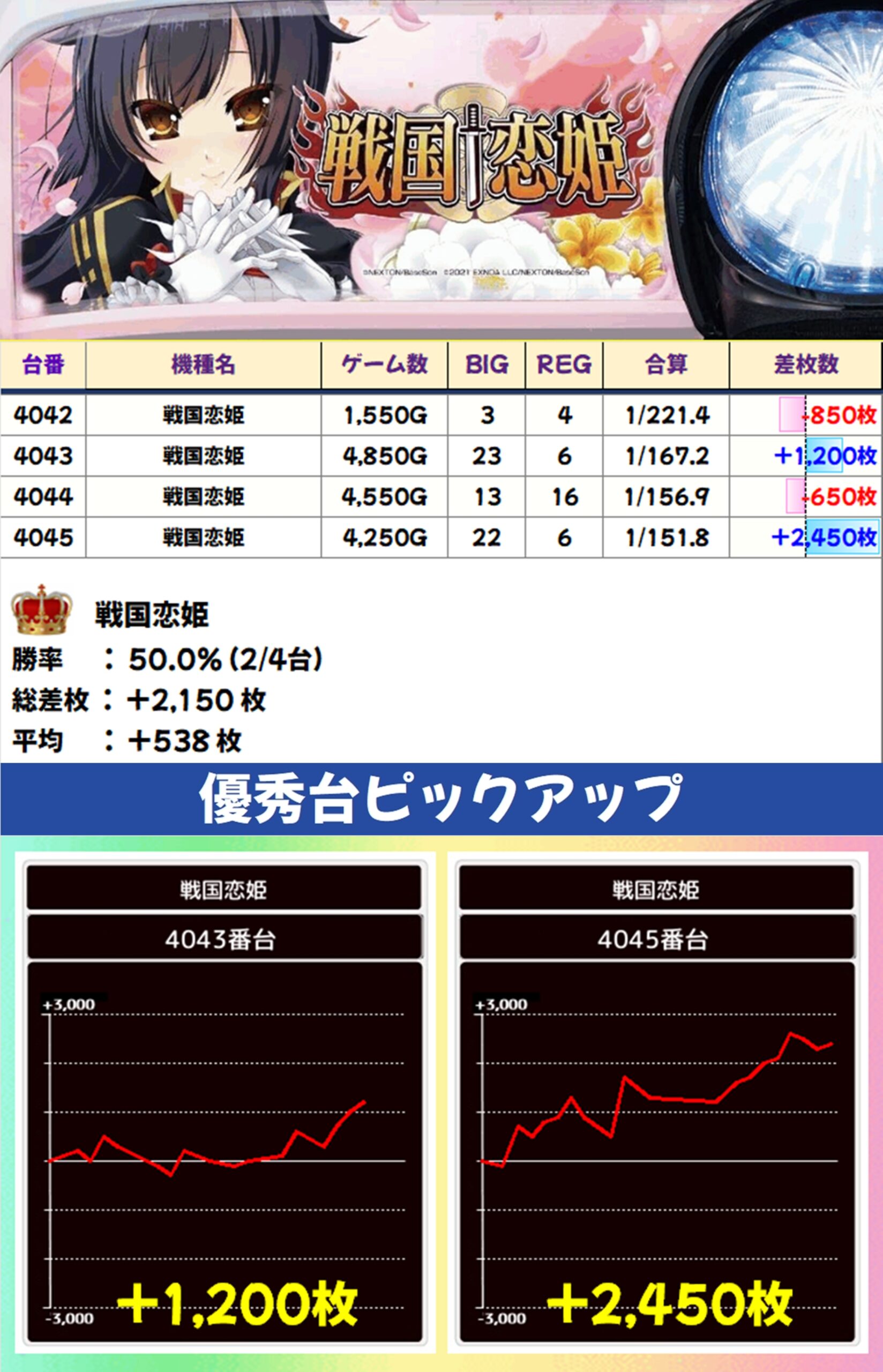 戦国恋姫(2/4台+)→平均+538枚