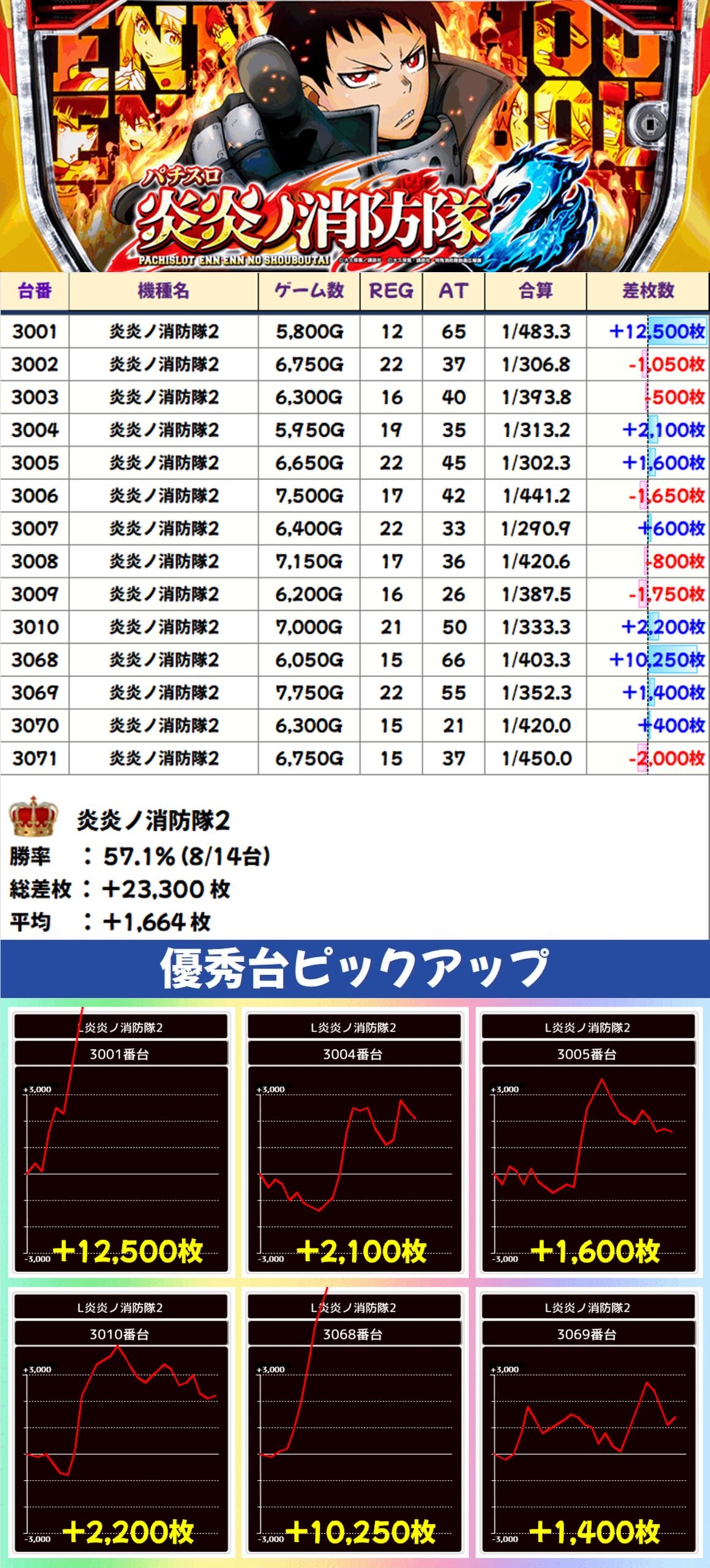 炎炎ノ消防隊2(8/14台+)→平均+1,664枚