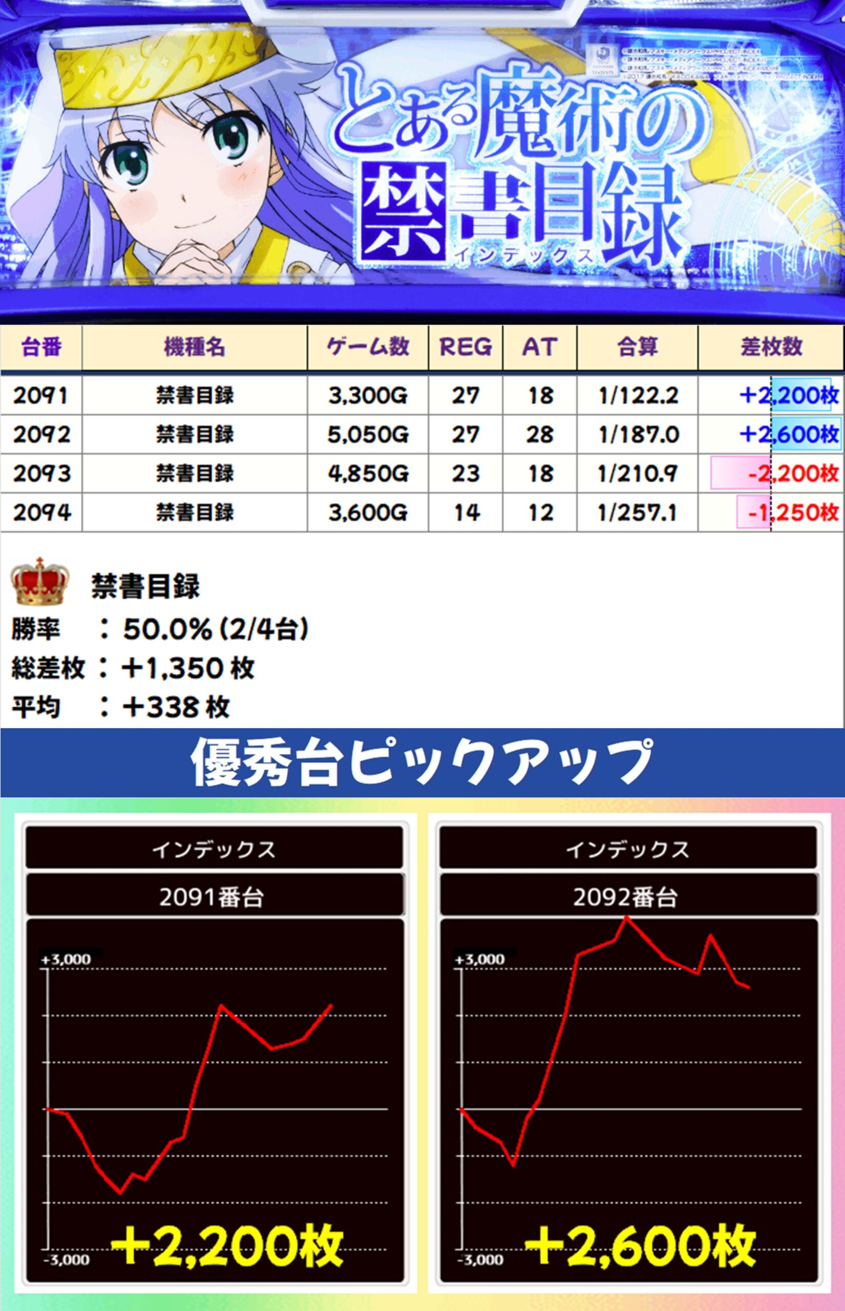 禁書目録(2/4台+)→平均+338枚