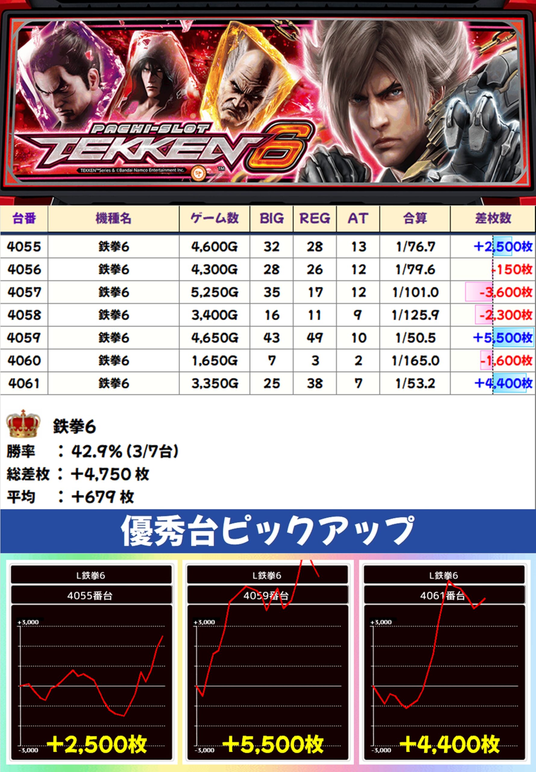鉄拳6(3/7台+)→平均+679枚