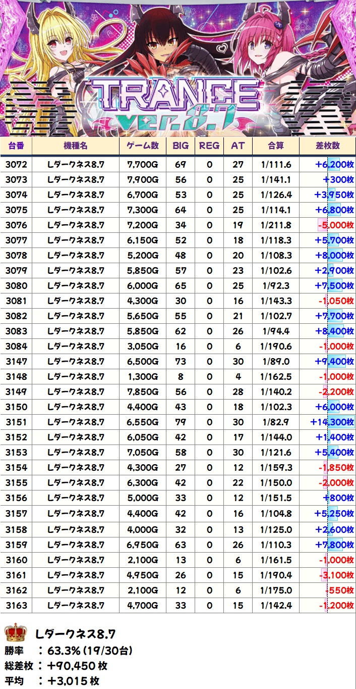 ToLOVEる8.7(19/30台+)→平均+3,015枚