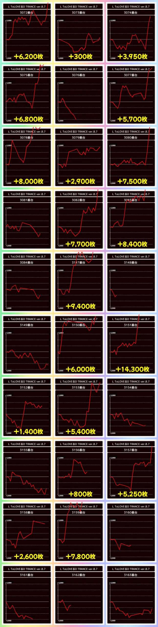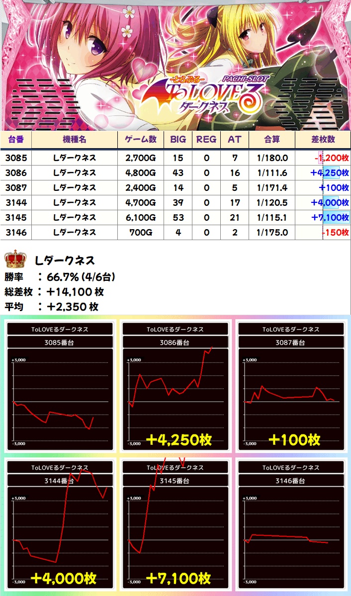 荒波機種というのもあり今回抜群の結果を残したのがToLOVEる8.7!13台以上が5000枚超で万枚超も出現!