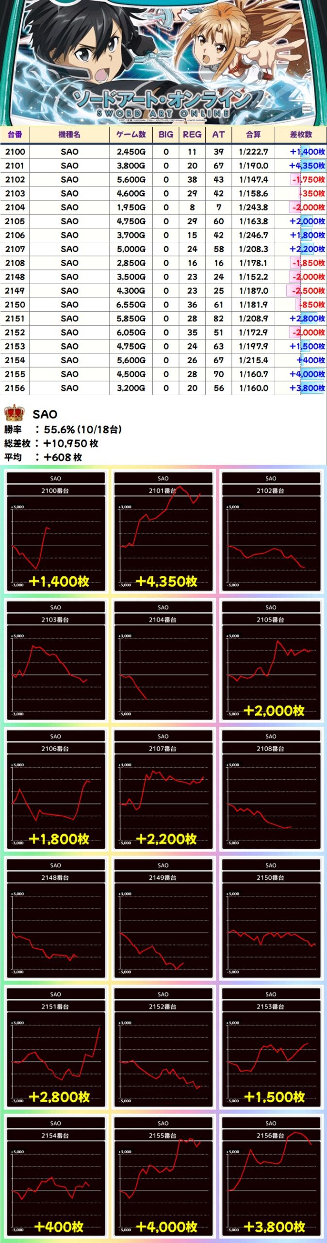 SAO(10/18台+)→平均+608枚