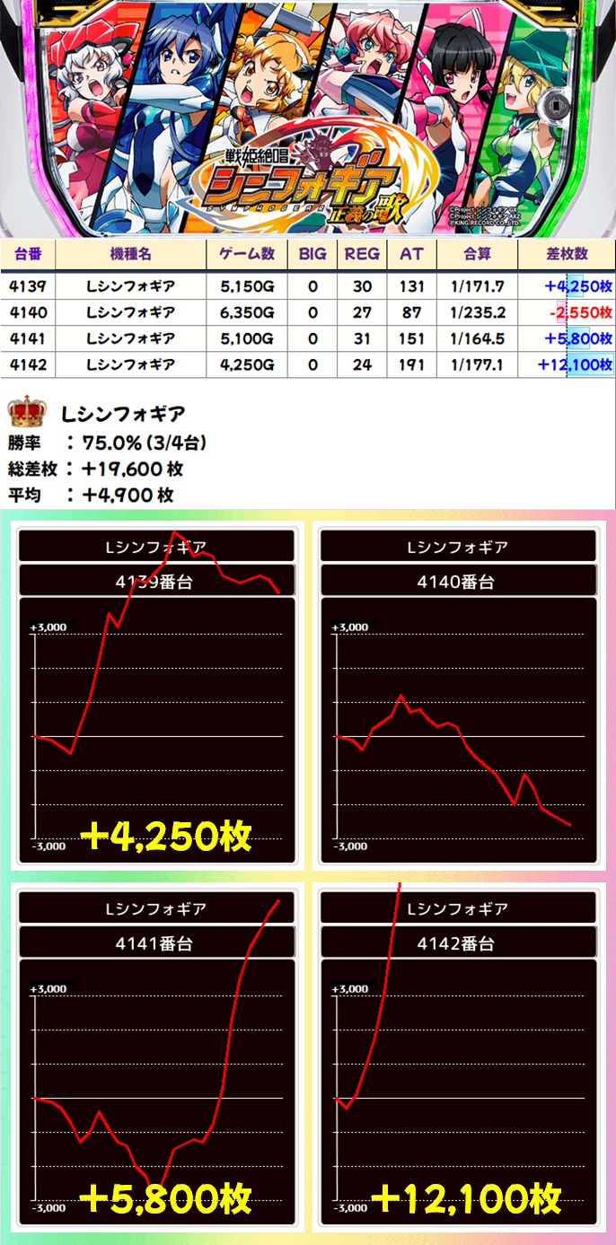 シンフォ正義(3/4台+)→平均+4,900枚