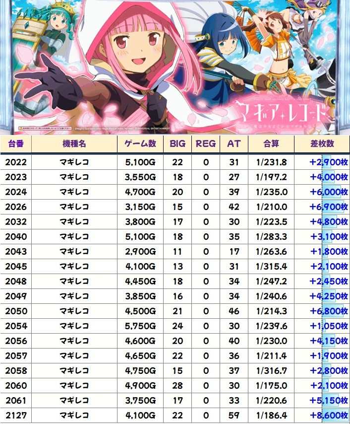 マギアレコード(22/48台+)→平均+608枚