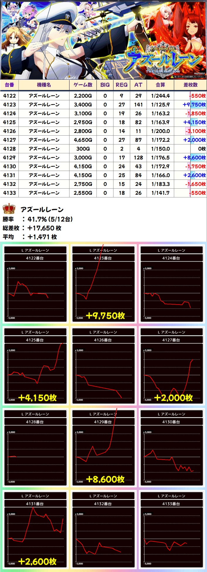 アズレン(5/12台+)→平均+1471枚