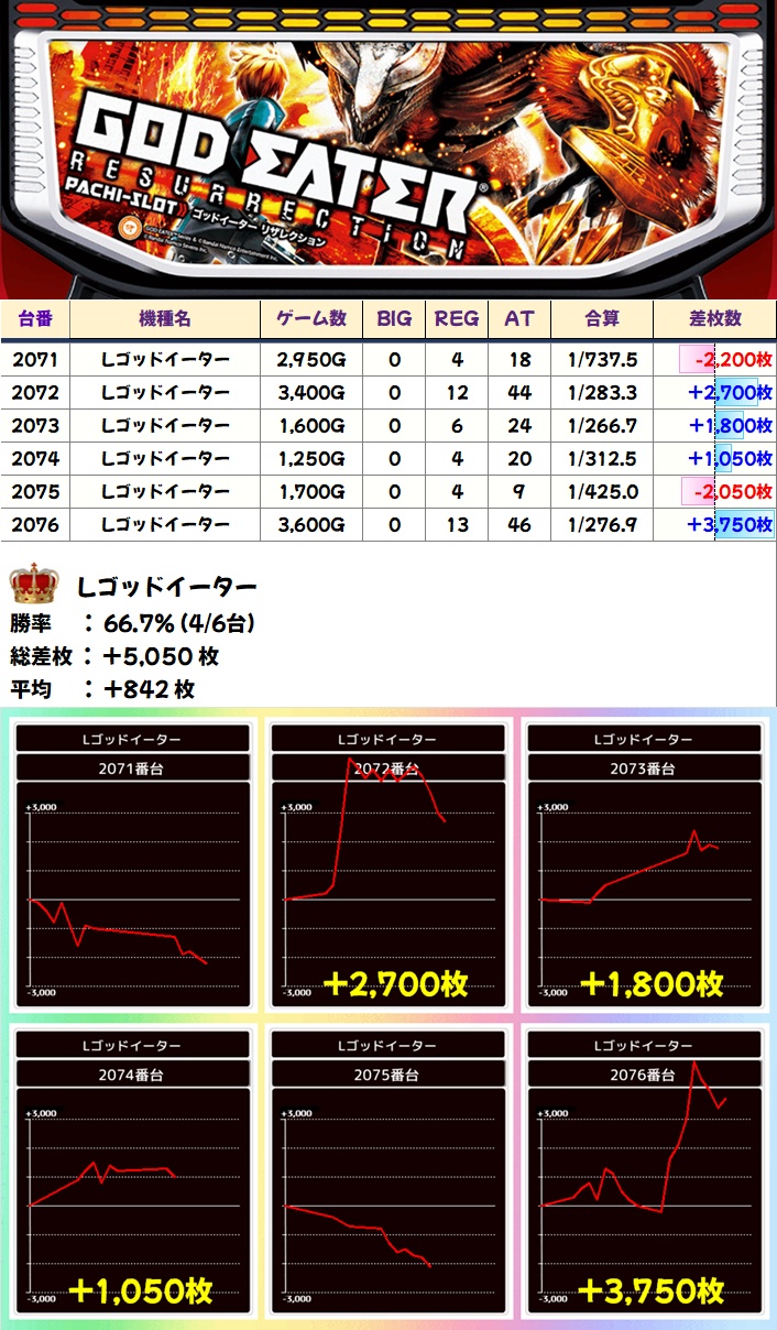 ゴッドイーター(4/6台+)→平均+842枚