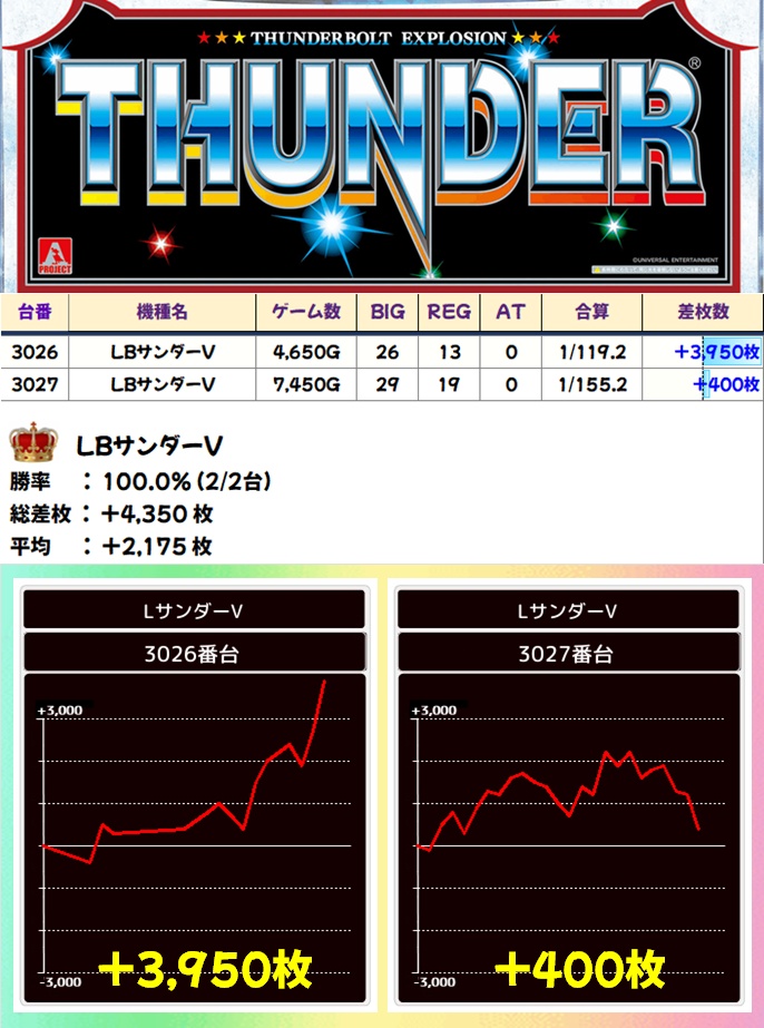 サンダーV(2/2台+)→平均+2175枚