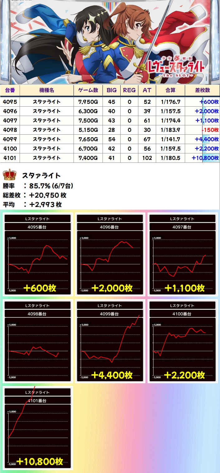 スタァライト(6/7台+)→平均+2,993枚