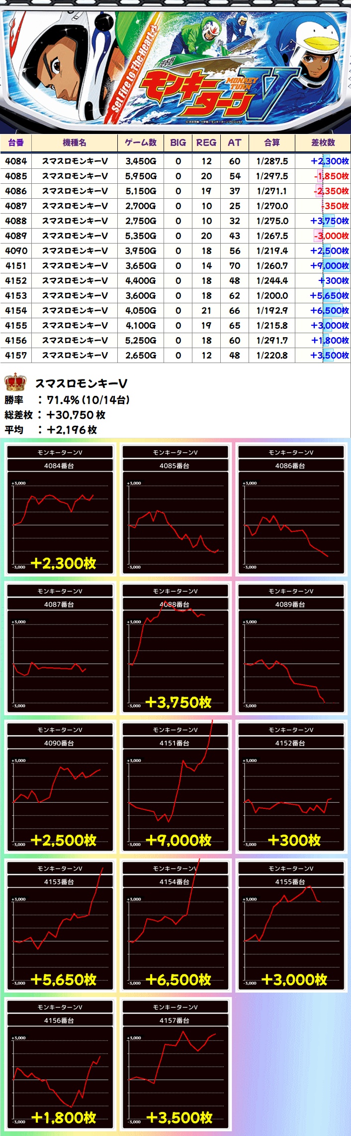 モンキーターンV(10/14台+)→平均+2,196枚